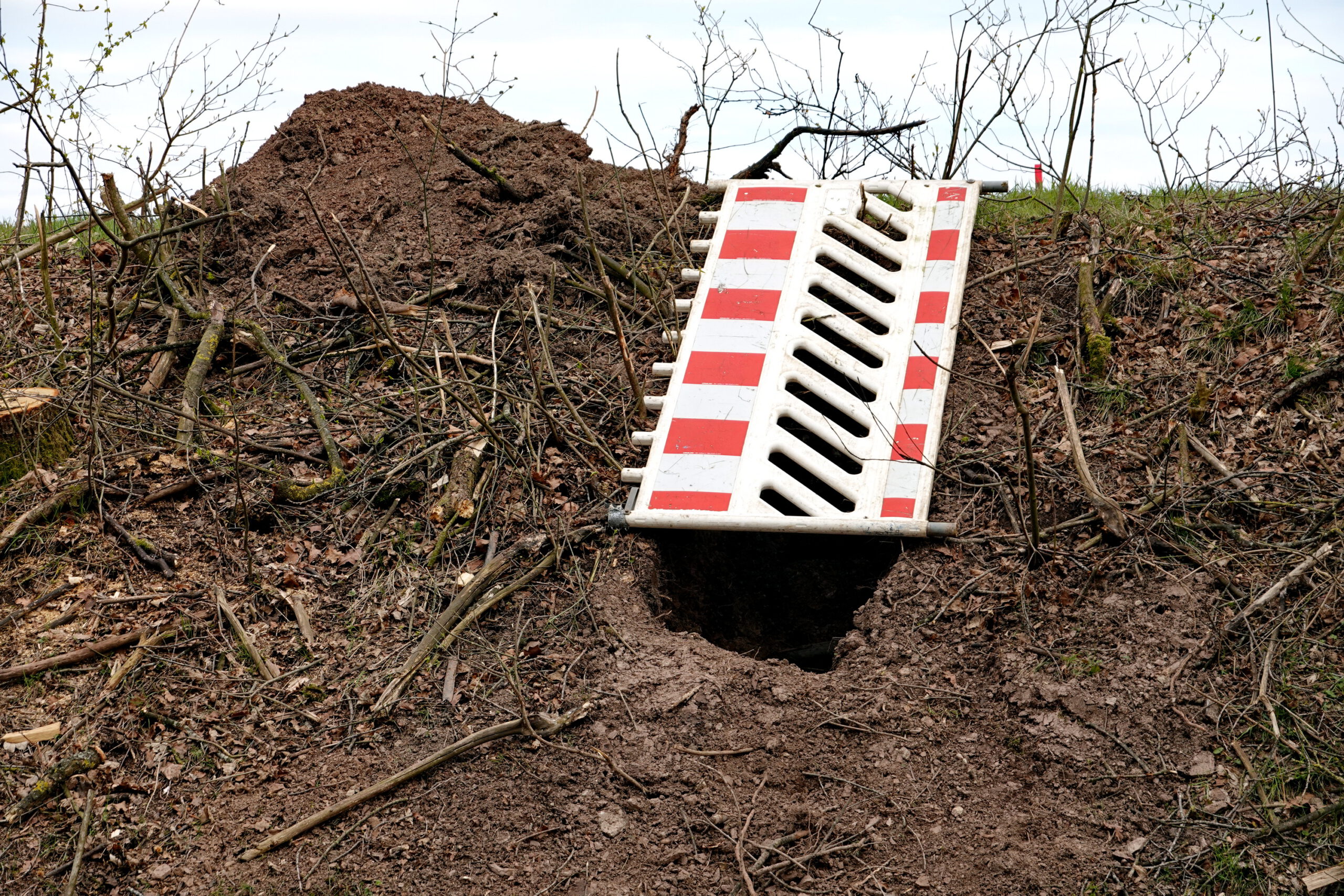 Das Wetter war gestern echt mies. Ich bin daher lieber im Haus geblieben. Bis auf einen ganz kurzen Ausflug vor die Haustür während einer Regenpause. Und das auch nur, weil ich meine neue Kompaktkamera bei schlechtem Wetter testen wollte. Herausgekommen ist dieser Schnappschuss eines Loches in einer Straßenböschung nebst Warnbake. Kein kompositorisches Highlight, aber die Bildqualität meiner kleinen Kamera ist wirklich gut.