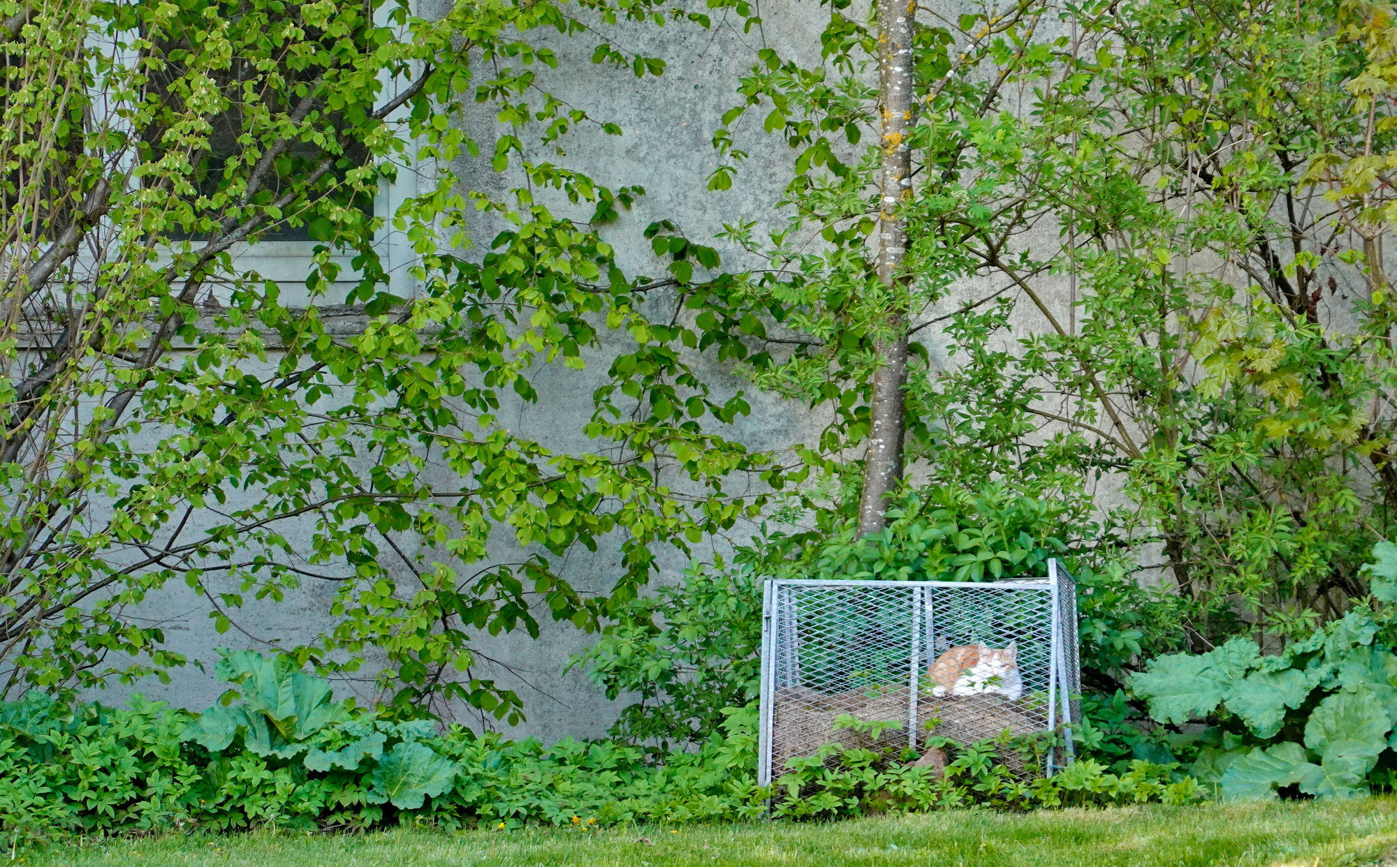 Abendlicher Dorfspaziergang. Dabei entdeckte ich diese Katze, die in einem Garten den Komposthaufen bewacht. Leider war es schon recht dunkel, ich musste die ISO-Zahl an meiner Kamera auf 1250 hochdrehen um noch verwacklungsfrei aus der Hand fotografieren zu können. Das Bildrauschen finde ich aber durchaus erträglich.